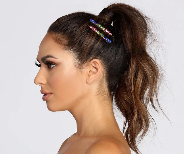 Rainbow Marquise Rhinestone Hair Pins