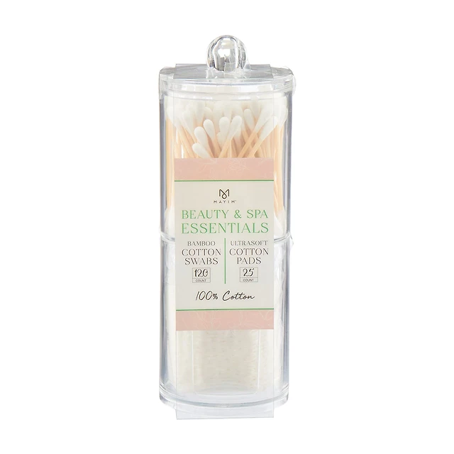 Mayim Cotton Swabs & Rounds, 120 Swabs + 25 Rounds, Jar