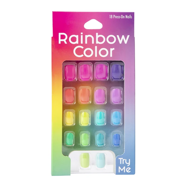 Pretty Woman Kid's Press On Faux Nails 24-Count - Rainbow Tips