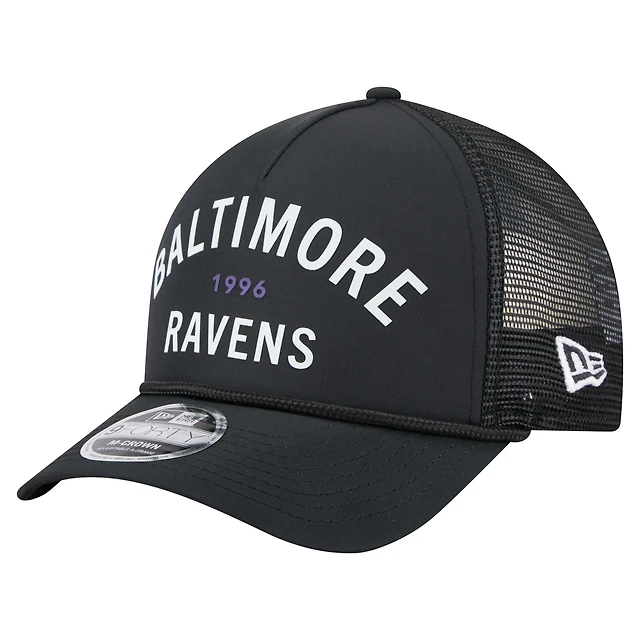 Men's New Era Black Baltimore Ravens Active Minimalist M-Crown A-Frame 9FORTY Adjustable Hat