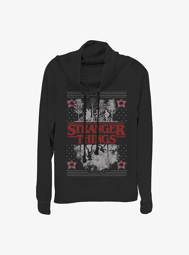 Stranger Things Upside Down Ugly Sweater Cowl Neck Long-Sleeve Womens Top