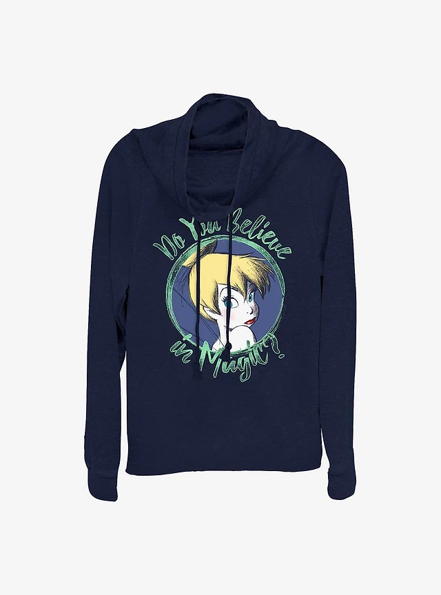 Disney Tinker Bell Believe Tink Cowl Neck Long-Sleeve Womens Top
