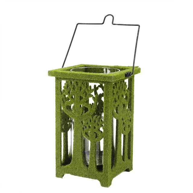 13.75" Green Moss Covered Tree Cut-Out Pillar Candle Lantern