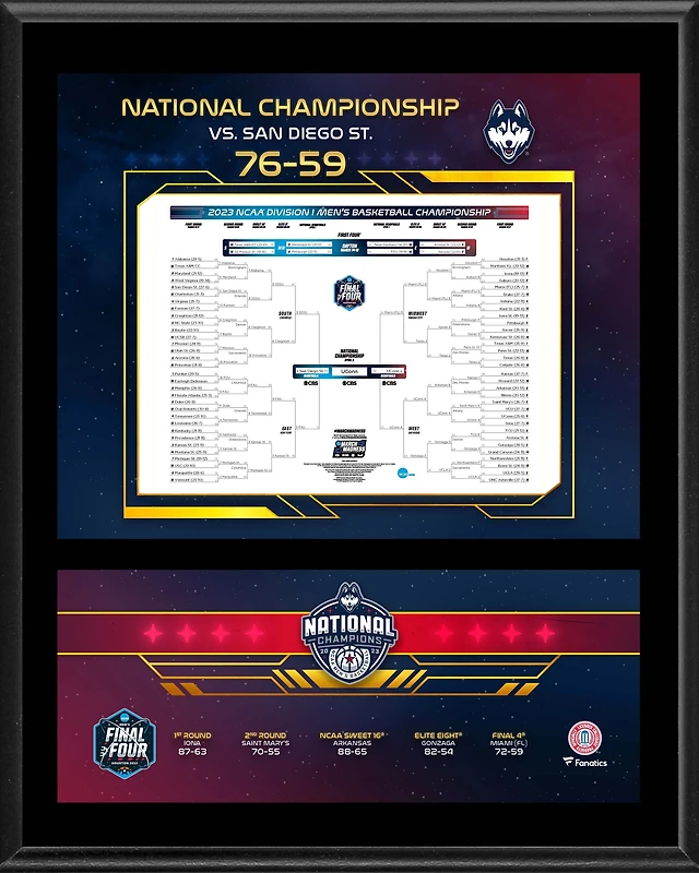 UConn Huskies 2023 NCAA Men's Basketball National Champions 12" X 15" Sublimated Bracket Plaque