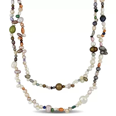 9-10mm Freshwater Cultured Pearl 2-Strand Necklace in Sterling Silver