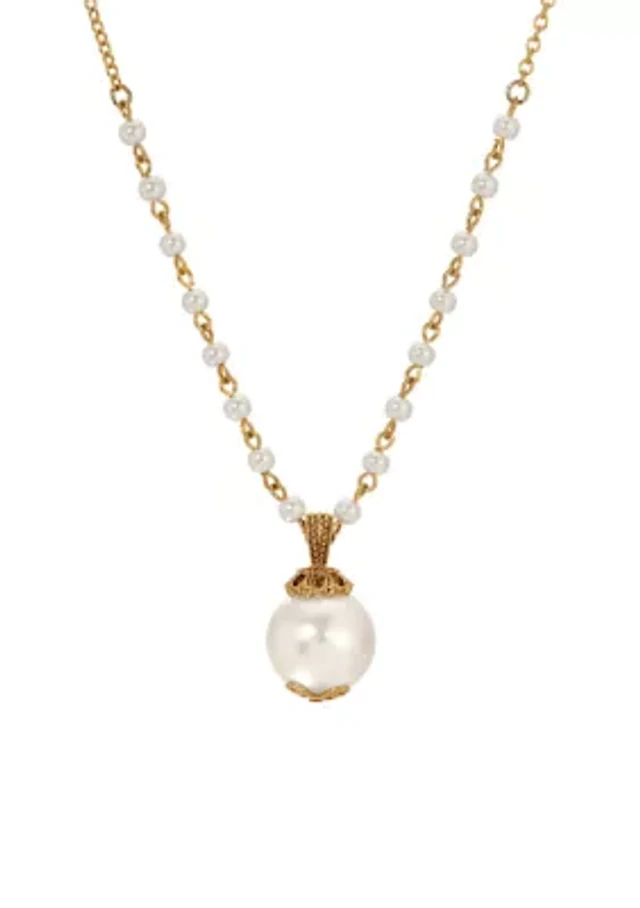 Gold Tone White Round Pearl and Chain Link Bracelet