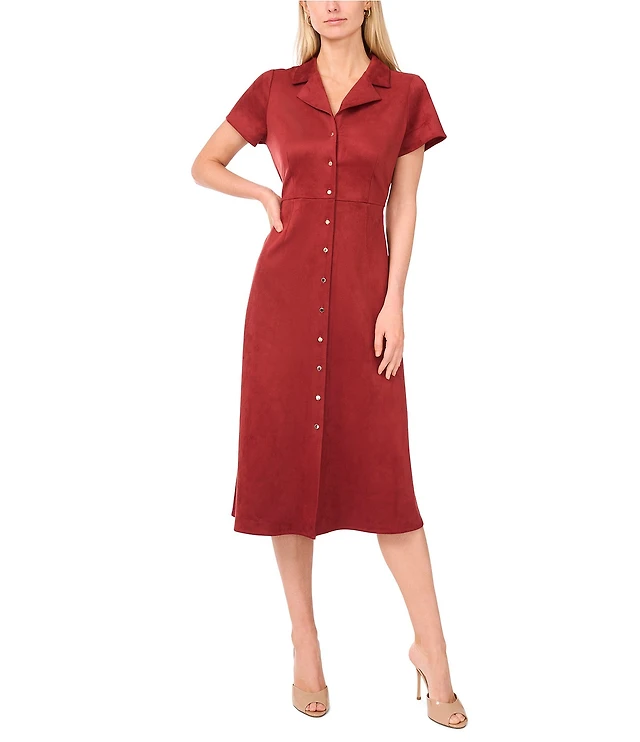 Vince Camuto Faux Suede Point Collar Short Sleeve Button Front Dress
