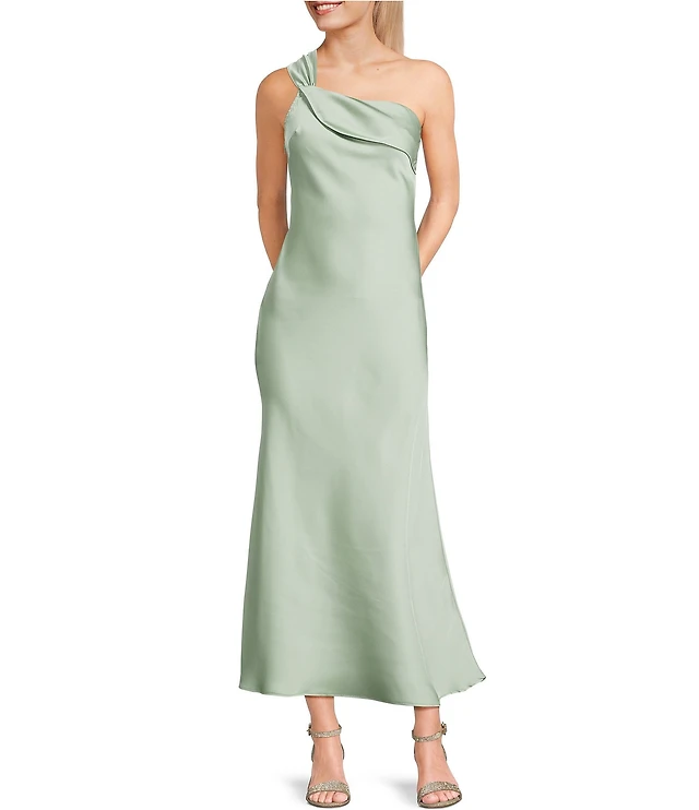 Adrianna by Adrianna Papell One Sleeve Ruched Stretch Satin Blouson Gown
