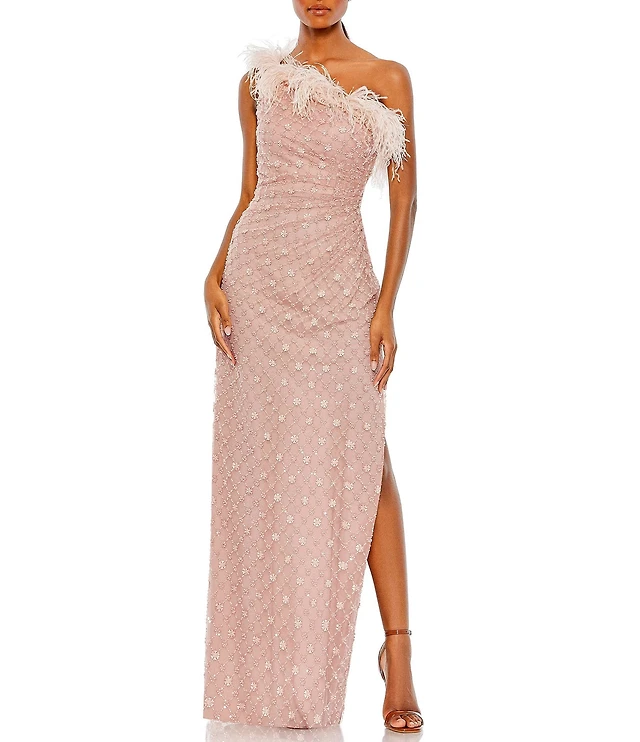 Mac Duggal One Shoulder Asymmetrical Ruffle Gown
