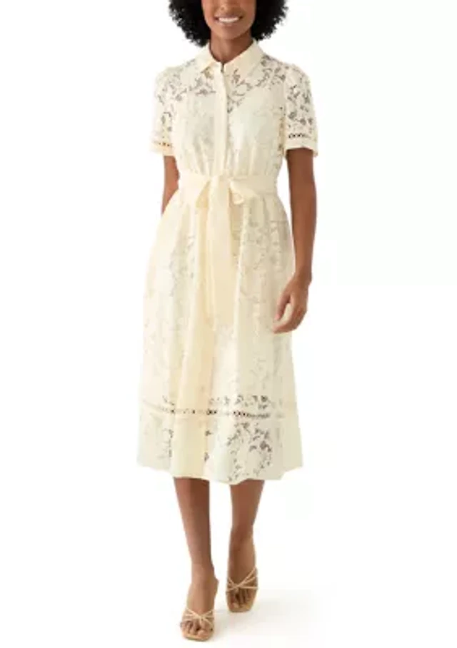 Caroline Rose Lace Round Neck 3/4 Sleeve Shift Dress