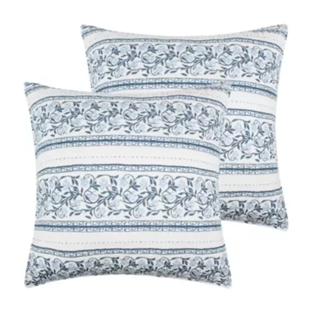 Yuletide Euro Sham Set of Two Quilted Plaid - Red, Green, Cream - Cotton