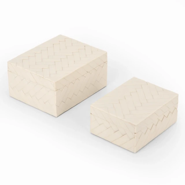Ivory Woven Decorative Boxes, Set of 2