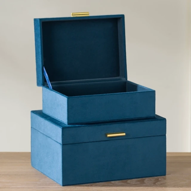 Blue Velvet Decorative Boxes, Set of 2