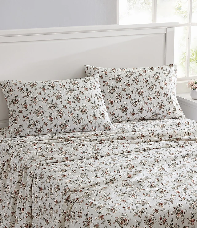Laura Ashley 200-Thread Count Ashfield Floral Printed Pattern Cotton Percale Sheet Set