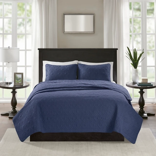 Navy Stitch Chevron 3-pc. King Coverlet Set