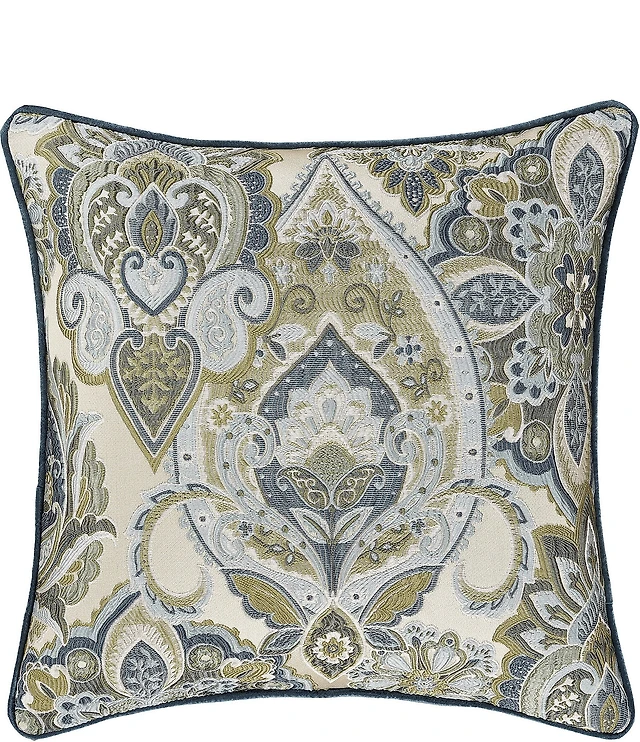 J. Queen New York Fairview Bordered with Embroidery Reversible Square Decorative Throw Pillow