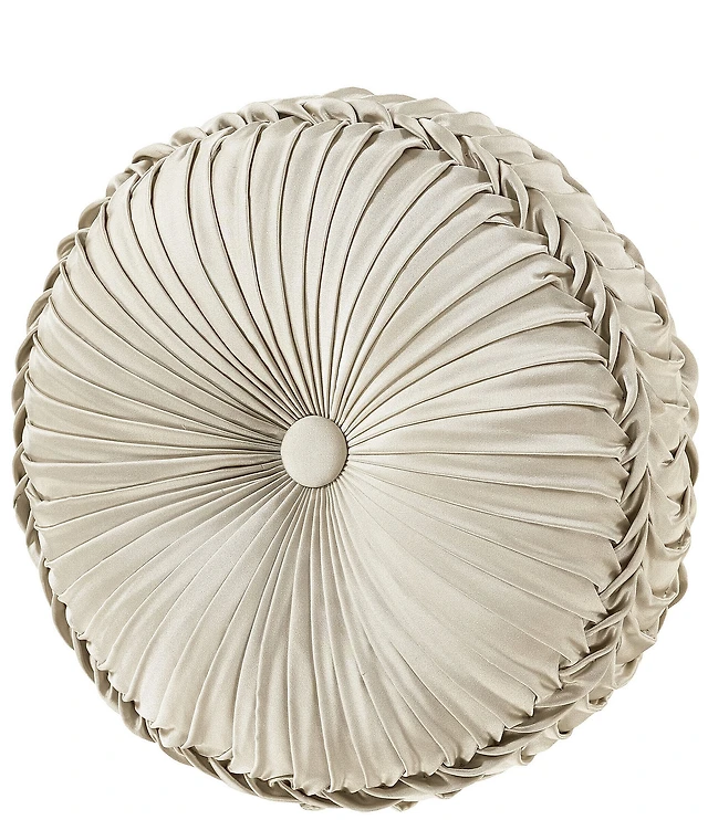J. Queen New York Amaretto Embroidered Medallion Tufted Pleated Detail Round Decorative Pillow
