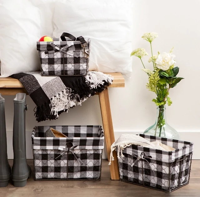 Chicken Wire and Buffalo Check Baskets, Set of 3