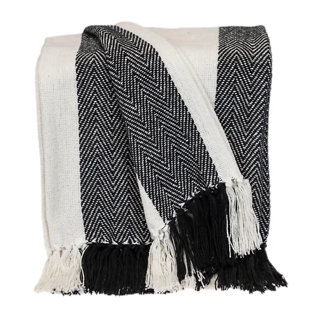 Navy and White Striped Harbor Throw Blanket