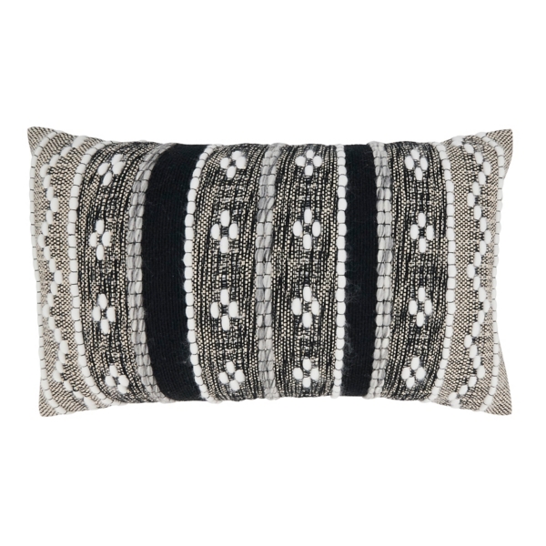 Black and Cream Woven Pattern Lumbar Pillow