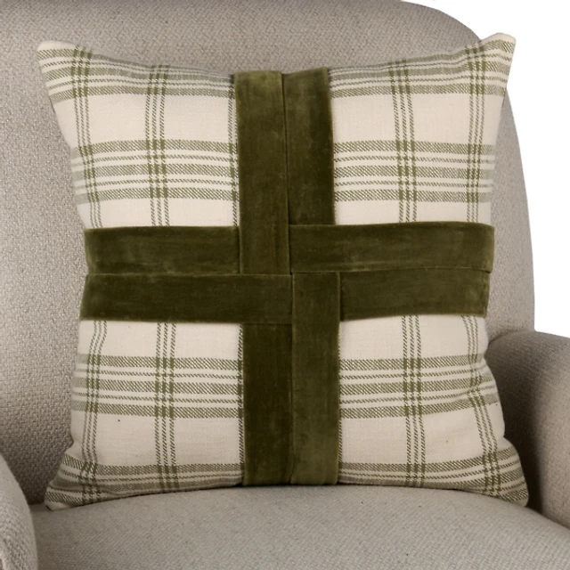 Merlot Plaid Velvet Cross Pillow