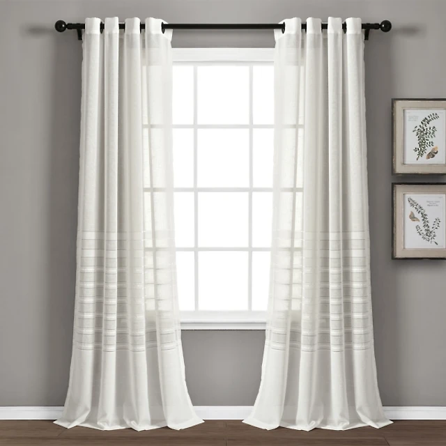 Dark Linen Lace Curtain Panel Set, 84 in.