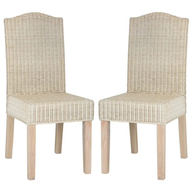 White Boucle Wood Penny Dining Chairs, Set of 2