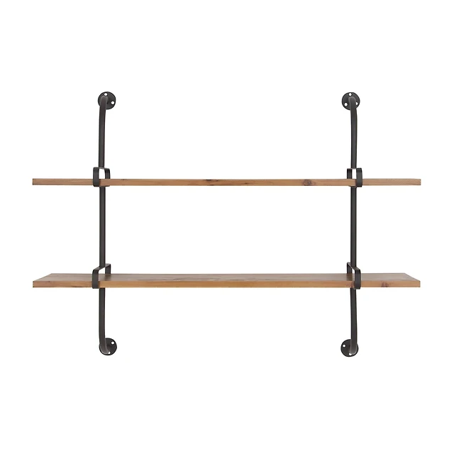 Brown Wood Industrial Wall Shelf Set