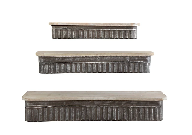 Glitzhome® Farmhouse Metal & Wooden Triangle Floating Shelf Set