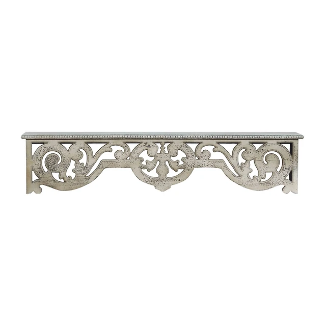 Small White Rustic Embossed Wood Floating Wall Shelf