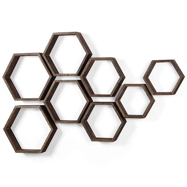 American Art Decor Natural Honeycomb Floating Wood Wall Shelves Set