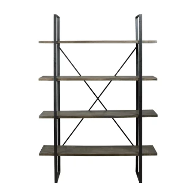 Walker Edison Gray Wash X-Frame Industrial Wood Bookshelf