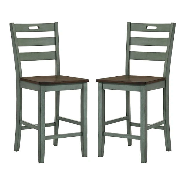 Antique Green Wood Counter Stools, Set of 2