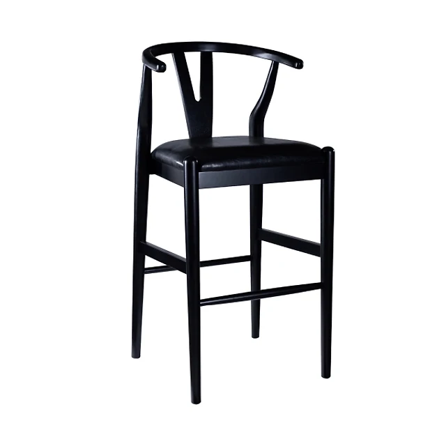 Black Faux Leather Wishbone Bar Stool