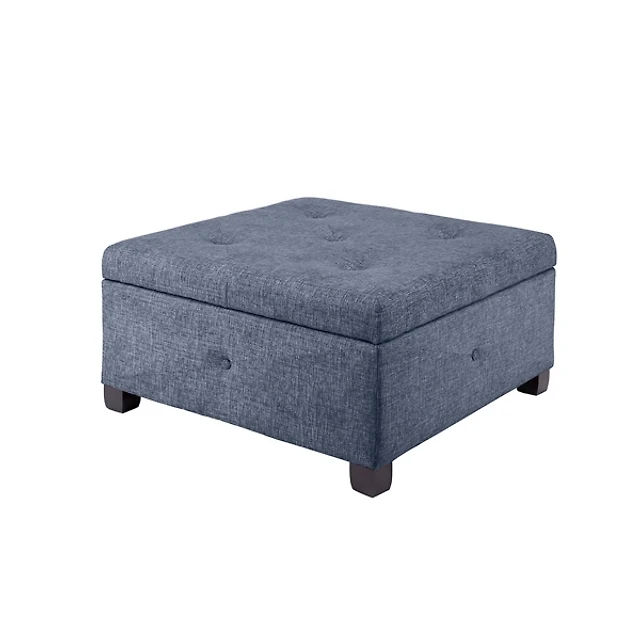 SAFAVIEH Natural Wooden Chaise with Navy Cushion