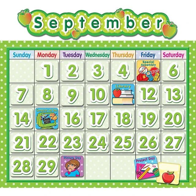 Polka Dot School Calendar Bulletin Board Set