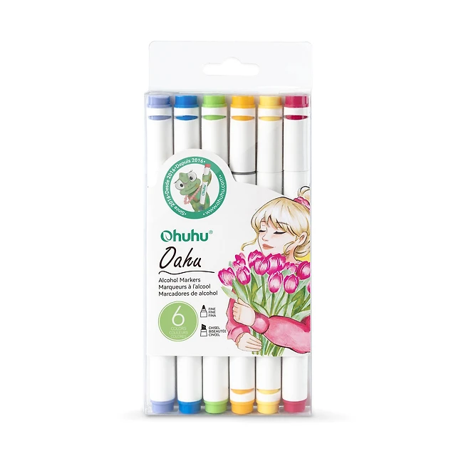 Ohuhu® Oahu 6 Color Primary Alcohol Marker Set