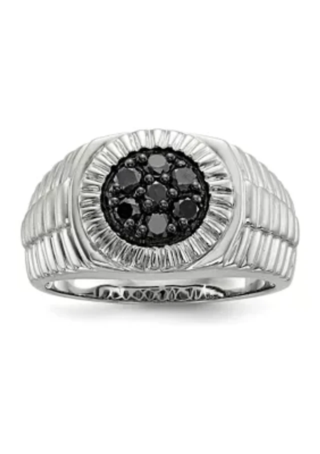 Men's Sterling Silver Black Diamond Polished Ring