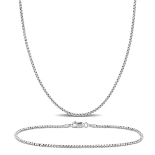Half Rope & Box Men's Necklace and Bracelet Set in Sterling Silver