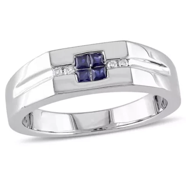 Lab Created Square Blue Sapphire and Diamond Accent Men's Ring 10k Yellow Gold