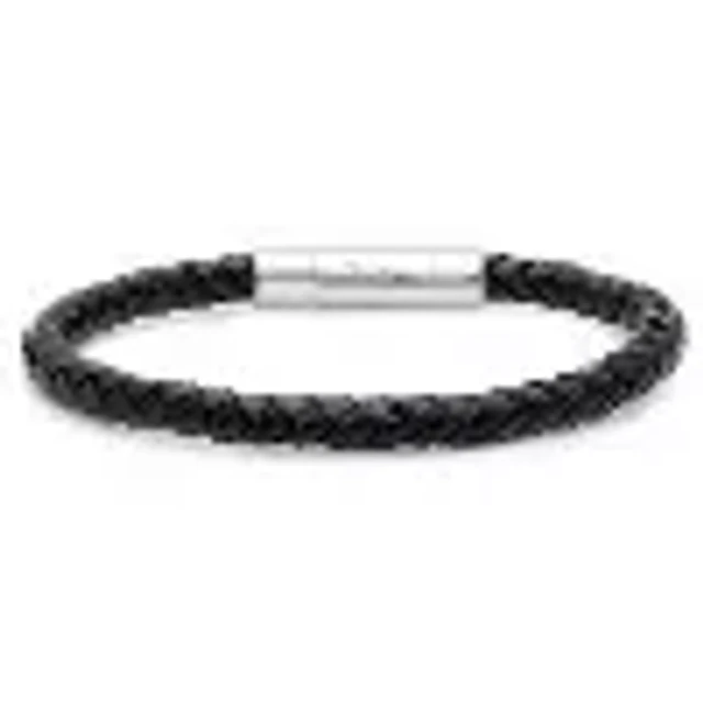 Men's genuine leather 8.5" braided bracelet brown, push n pull closure