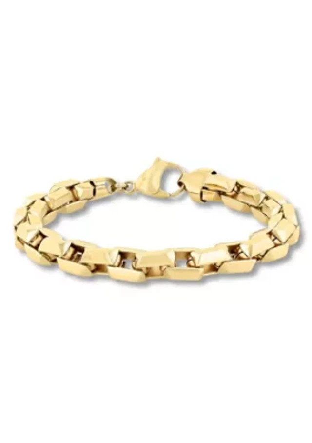 14K Gold Over Sterling Silver Mens Silver Box Chain Bracelet