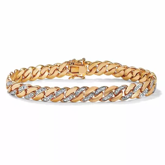 Men's Diamond Accent Curb-Link Bracelet Yellow Gold-Plated 8.5"