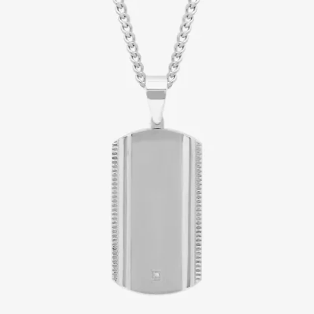 Shaquille O'Neal XLG Mens White Cubic Zirconia Stainless Steel Dog Tag 24 Inch Pendant Necklace