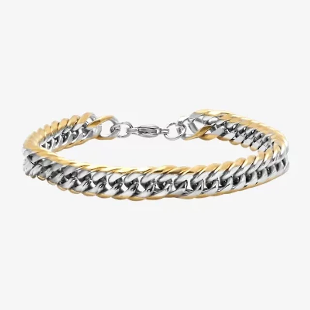 Steeltime Mens 18K Gold Over Stainless Steel Solid Hypoallergenic 8 1/2 Inch Link Bracelet