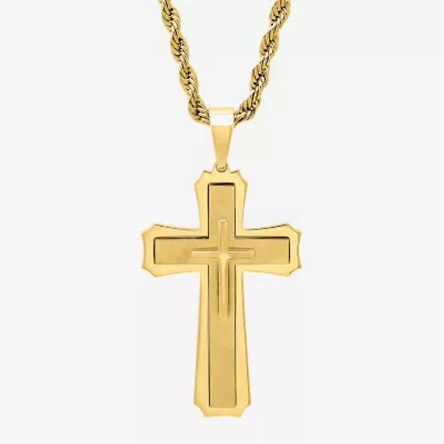 Mens Stainless Steel Cross Pendant Necklace