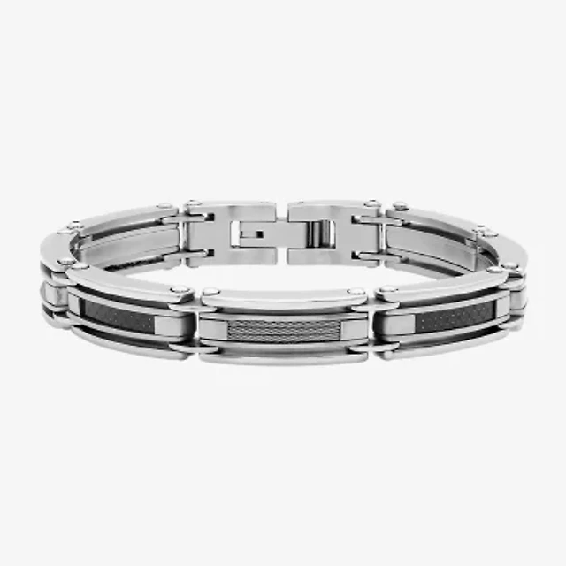 Mens Stainless Steel and Carbon Fiber Chain Bracelet