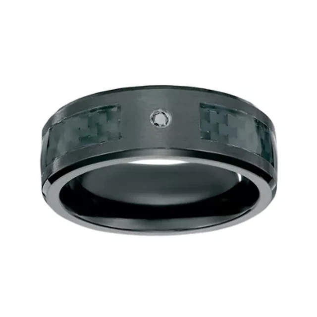 Mens Diamond-Accent Black Stainless Steel & Ceramic 3-stone Wedding Band
