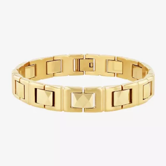 Mens 8 Inch 18K Gold over Stainless Steel Link Bracelet