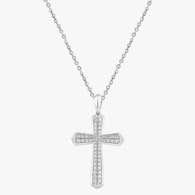 Cross (F, Si2) Mens 1 CT. T.W. Lab Grown White Diamond Sterling Silver Cross 18 Inch Pendant Necklace
